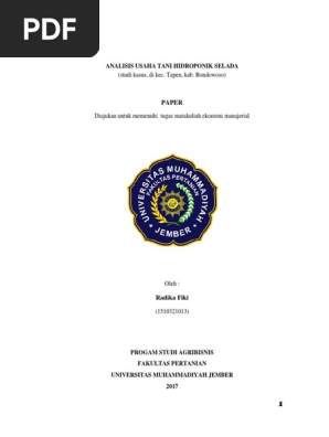 Analisis Usahatani Selada Sistem Hidroponik Dengan Sistem Nftdi