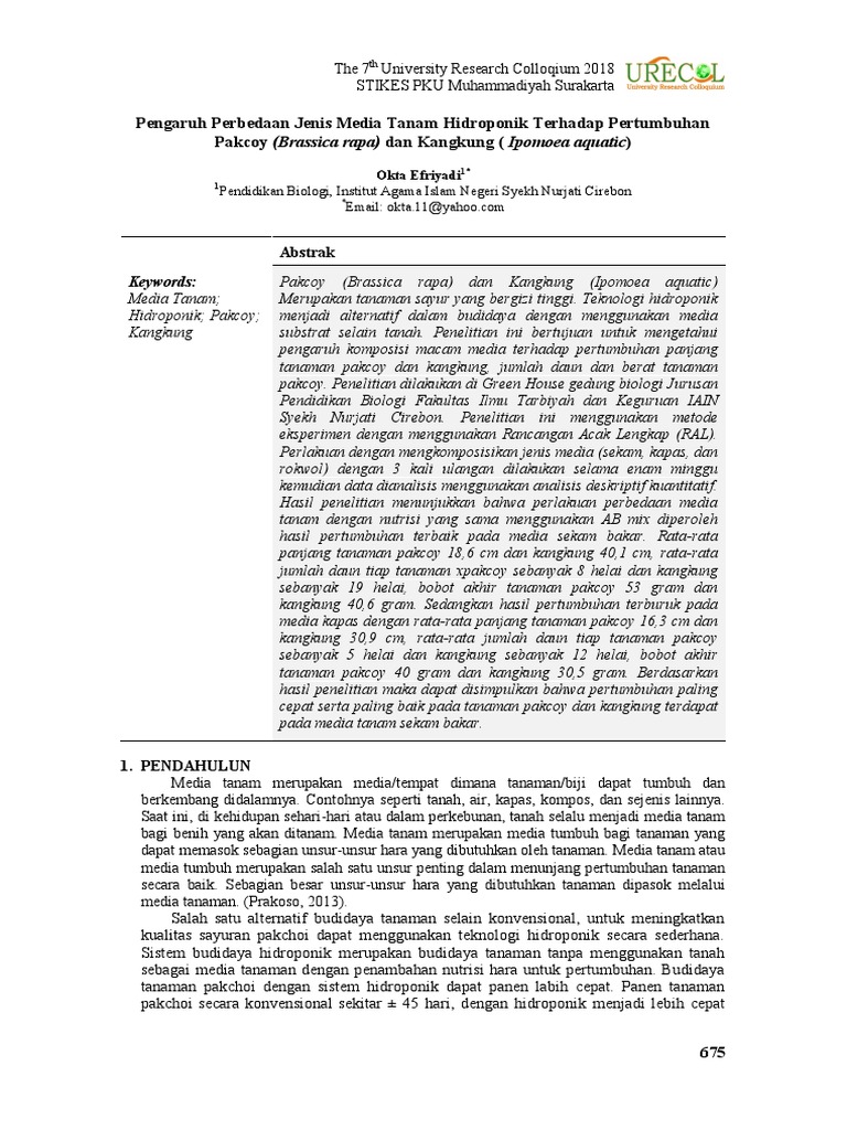 Jurnal Hidroponik Kangkung Pdf