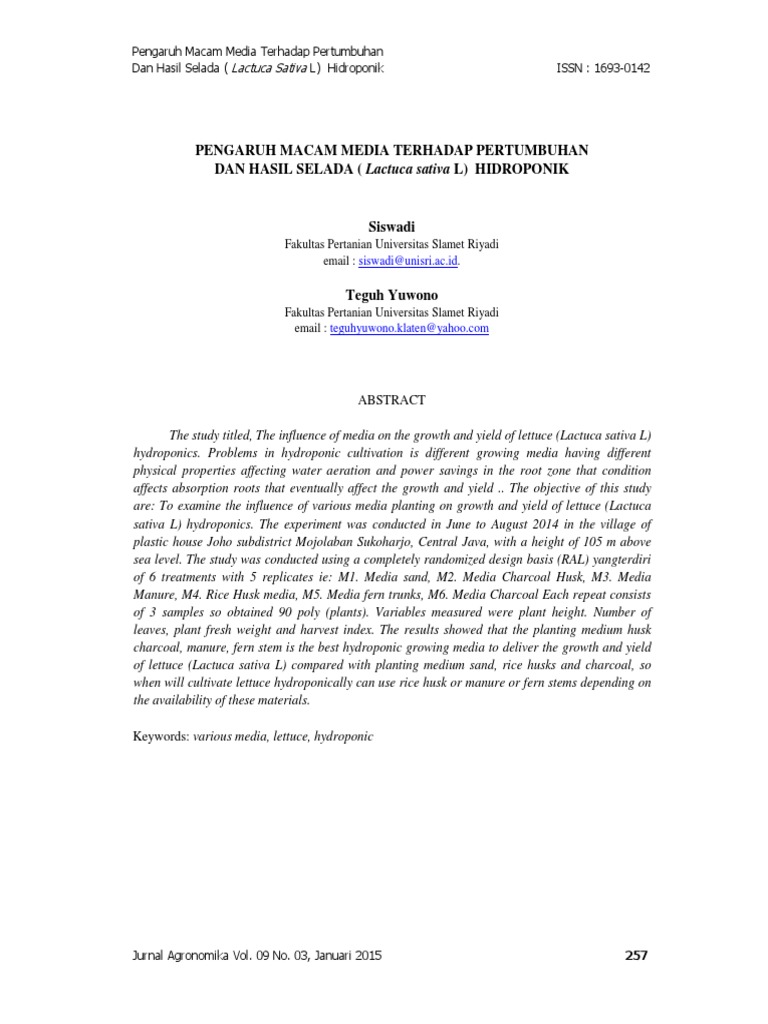 Jurnal Hidroponik Selada Pdf