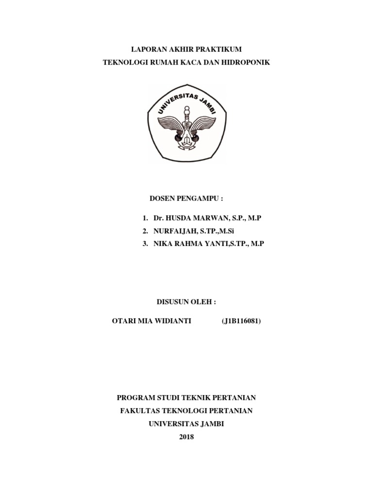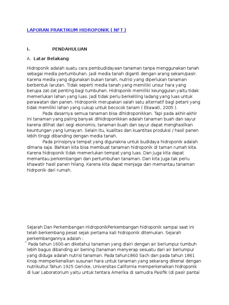 Doc Laporan Praktikum Hidroponik Nft Andita Putra Academia Edu