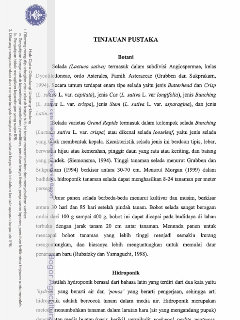 Tinjauan Pustaka Tanaman Selada Hidroponik