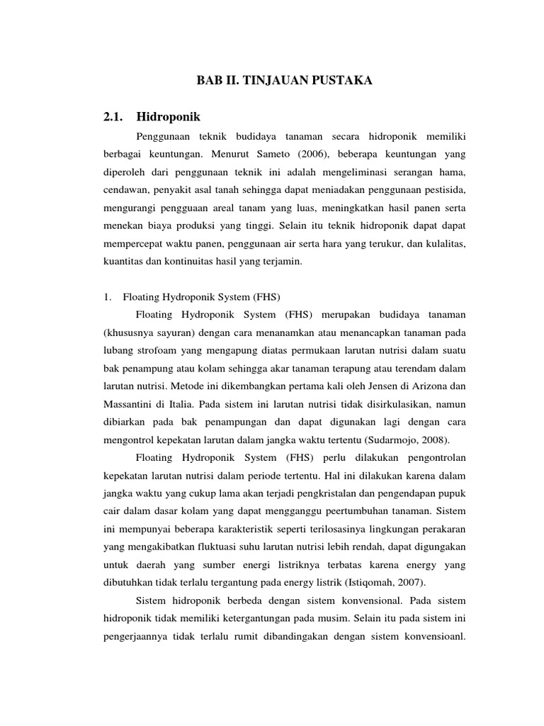 4 Ii Tinjauan Pustaka A Hidroponik Hidroponik Adalah Suatu